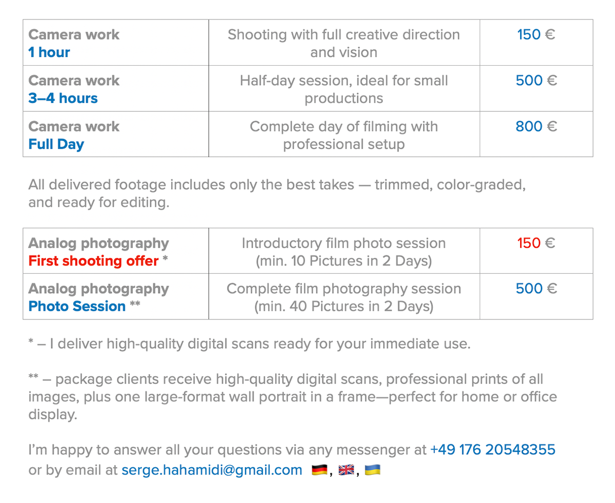 I approach every project not just as a cameraman, but as a filmmaker with a clear vision of the final product. Whether it’s capturing authentic emotions, cinematic lighting, or storytelling through motion — I always aim for the image to speak for itself. Every frame I deliver is carefully selected and color graded, ready for seamless editing and creative use.